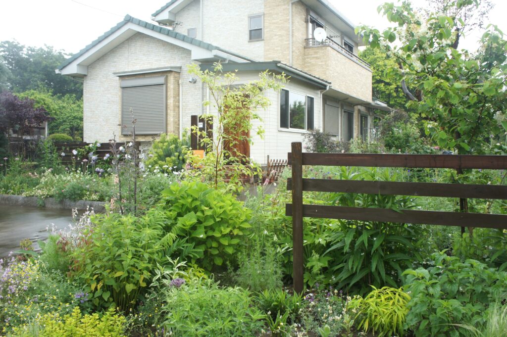 美しい林を背景にした藤田さんの庭は、植物たちが自然に寄り添う緑のイングリッシュガーデンそのものです。