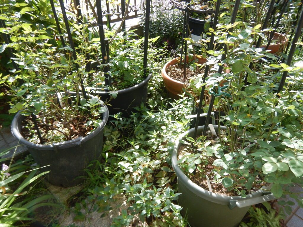 薔薇鉢を中心にして雑草を採り施肥を行います。以前は夏剪定後に堆肥のマルチも行っていましたが、面倒なので冬剪定後の元肥の際に行い、年1回になりました。