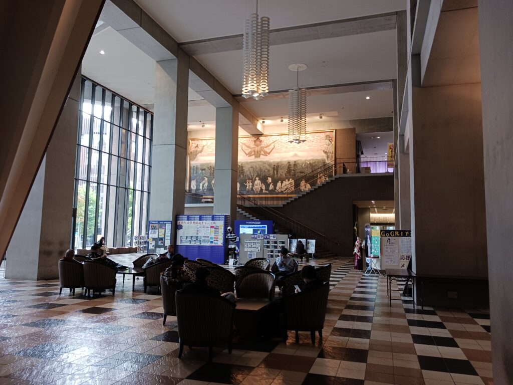 明治大学の駿河台校舎のロビーです。以前は駿河台の歩道は須田町の交差点まで、ファストフードを購入する明治の学生で溢れていましたが、いまは学生の姿はあまり見かけなくなりました。巨大な校舎内でたむろしているのでしょうか?それとも郊外に行ってしまったのでしょうか?早稲田の構内と比べると学生の姿がとても少ないです。