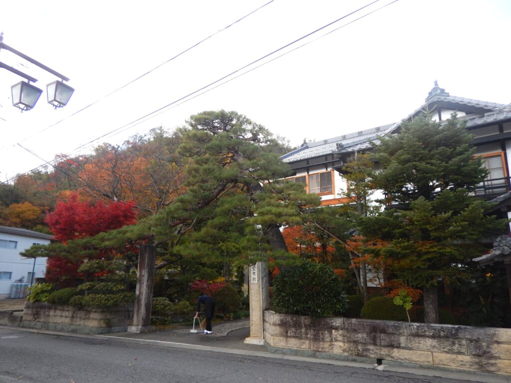 宿の入り口は紅葉の盛りです。子供の頃浦和の街にもたくさんあった大谷石の門柱も見なくなりました。