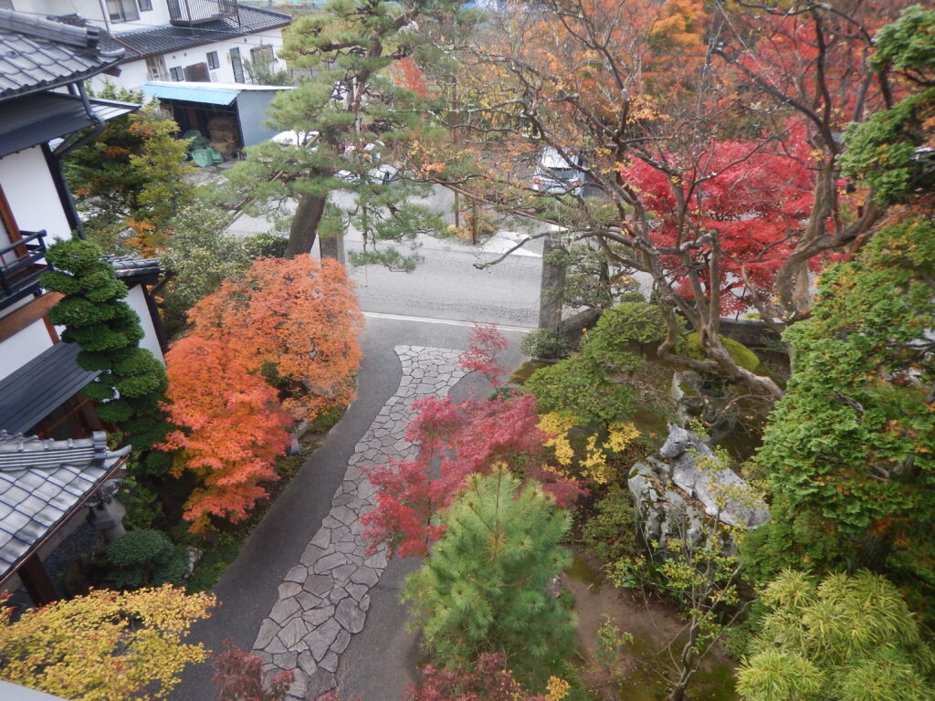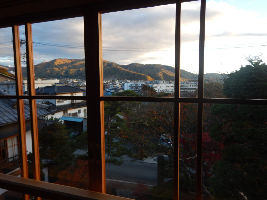 部屋はメンバーでも若い方ですから3階を割り当てられました。松本盆地の街並みが遠くに望まれます。