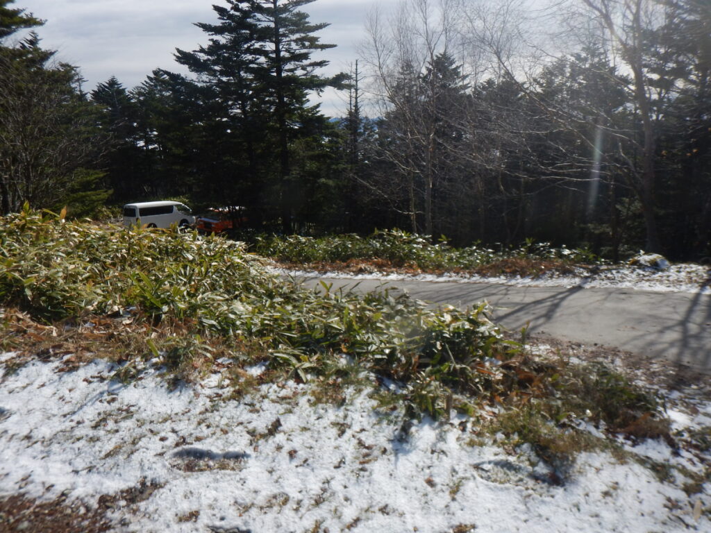 松本市街の標高は600mで美ヶ原は2,000mの溶岩台地のため、約1、400mを車で上がります。この辺りは標高1、300mぐらいでしょうか。