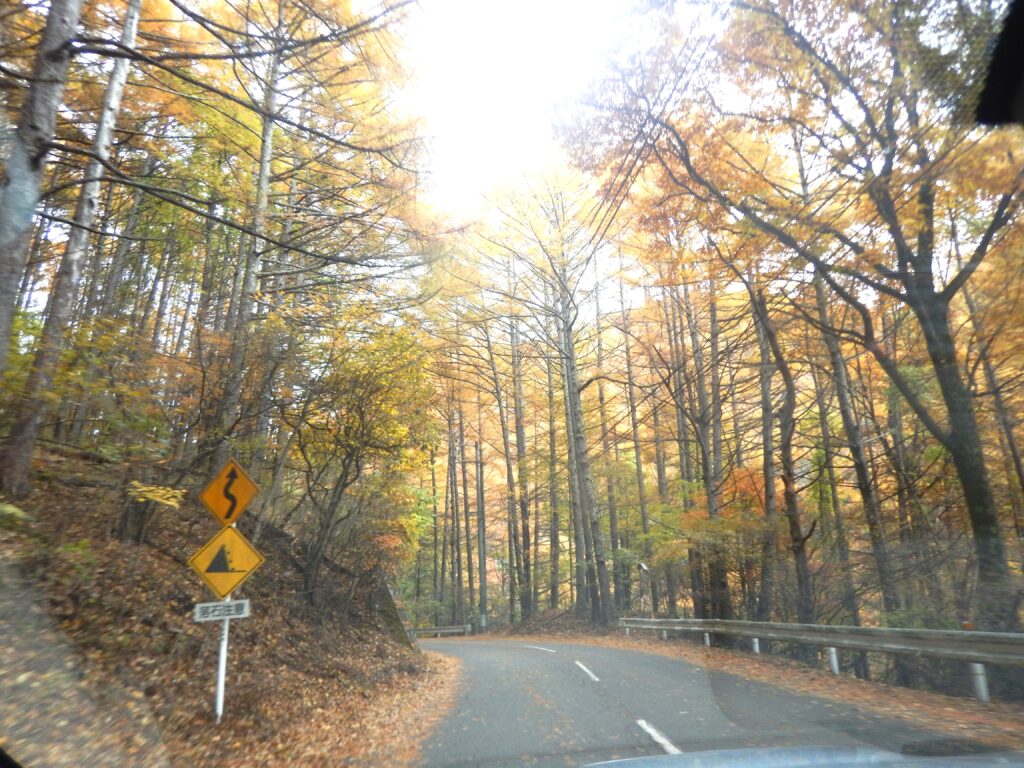 やがて美ヶ原の溶岩台地近くまで登ってきました。落葉松林の黄葉の道を登ります。ちょうどこの季節は八ヶ岳も落葉松林の黄葉が終わりに差し掛かるころです。