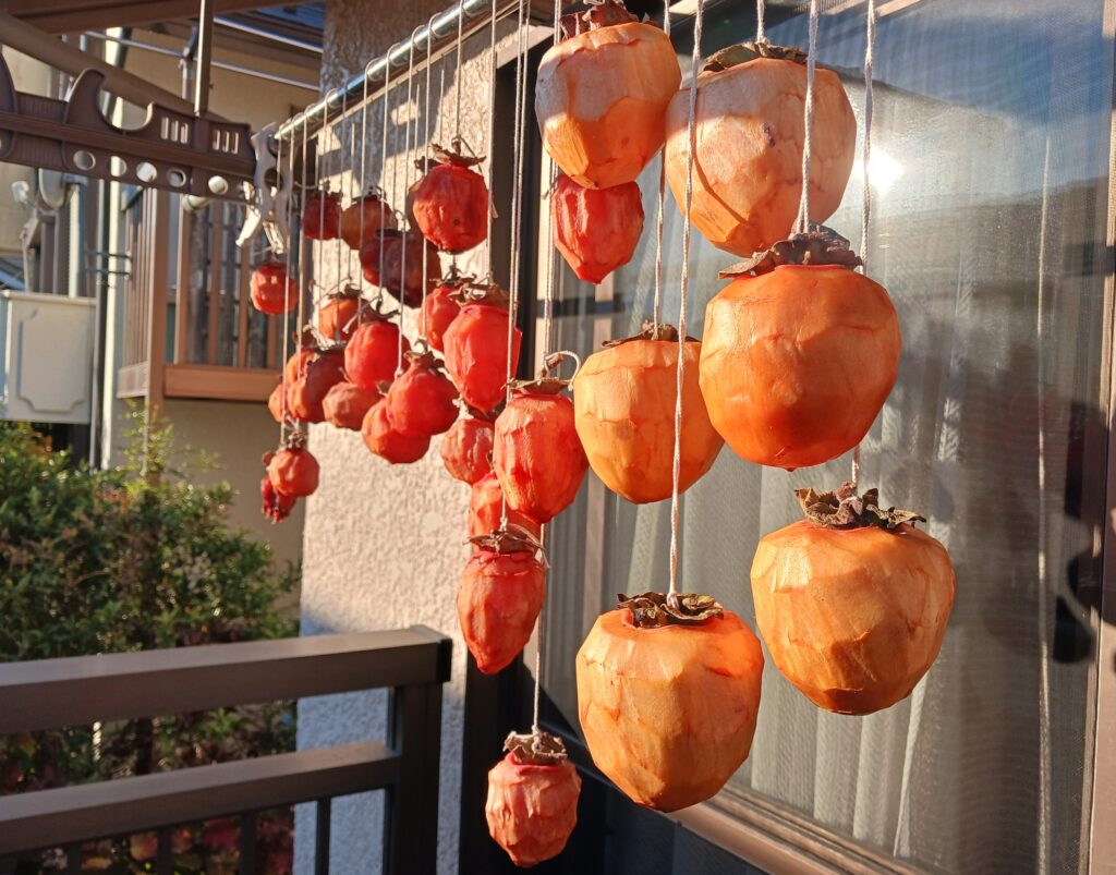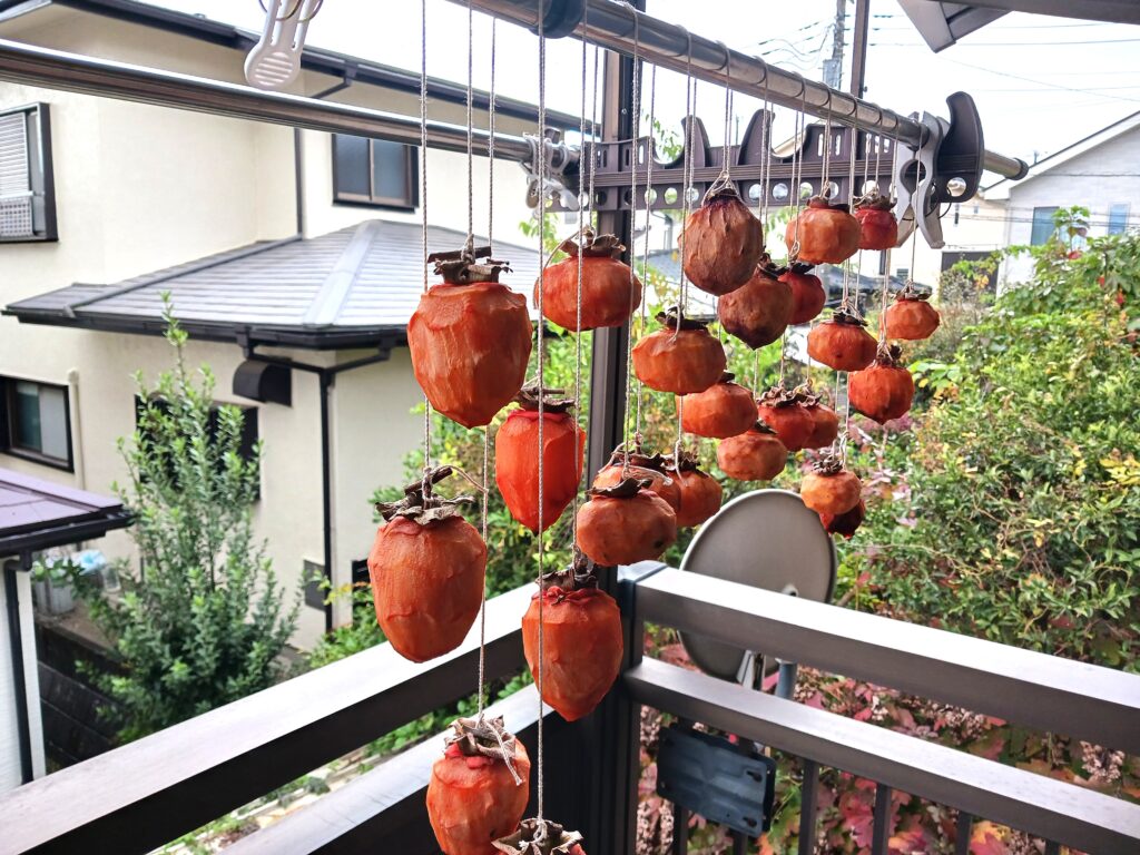 しかし毎年秋になると、祖母は家に無かった渋柿を大量に配達して貰って干し柿を作りました。2階の秋の日だまりの暖かい部屋で、私が1階から渋柿を少しずつ運び、祖母は丁寧に皮むきをして、終わると私がタコ糸をへたに結んで、窓の外の竹竿に吊るして干し柿づくりを行いました。姉や妹は干し柿にあまり関心を示さなかったので、おいしい干し柿はほぼ私の独り占めでした。