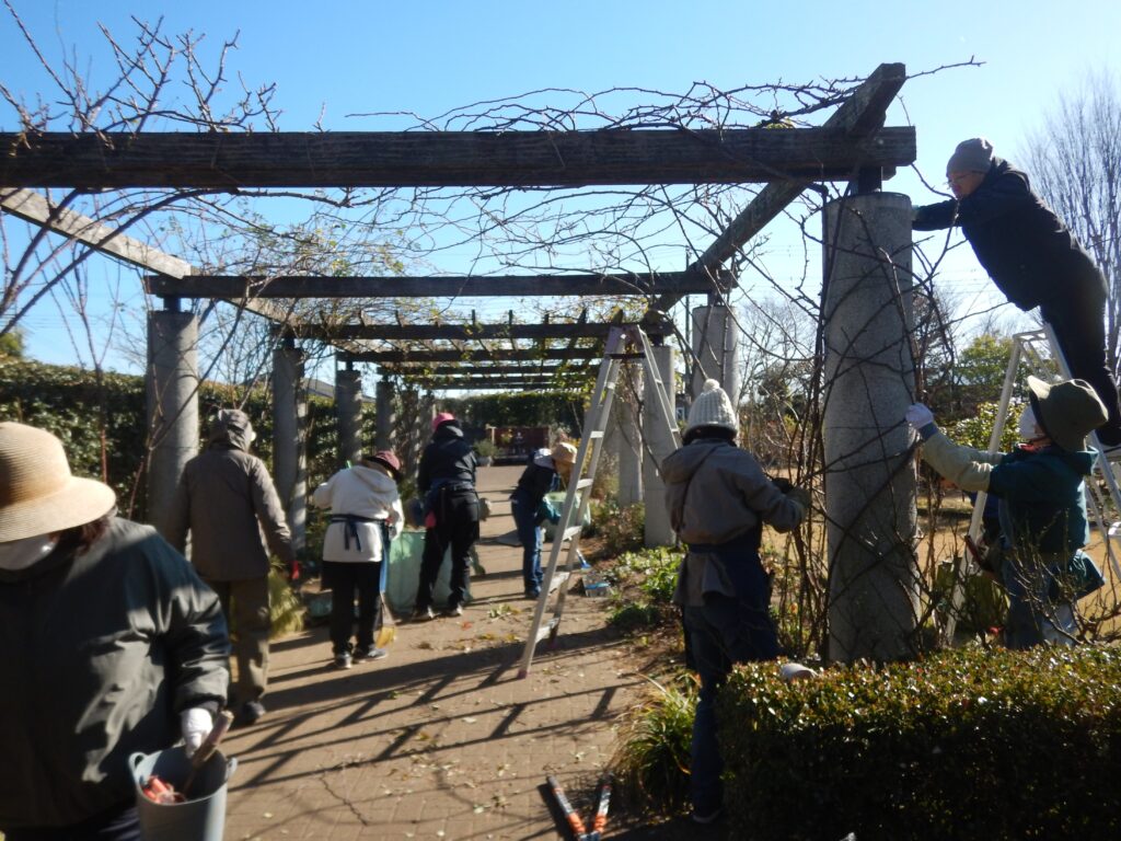 月に1度、12月は2度、薔薇のボランティアグループが鴻巣市の音楽と薔薇の「花久の里」に薔薇の手入れに行きます。