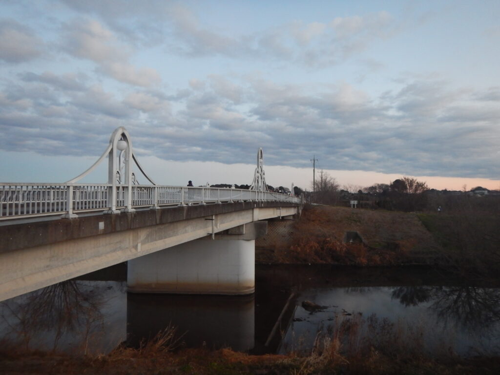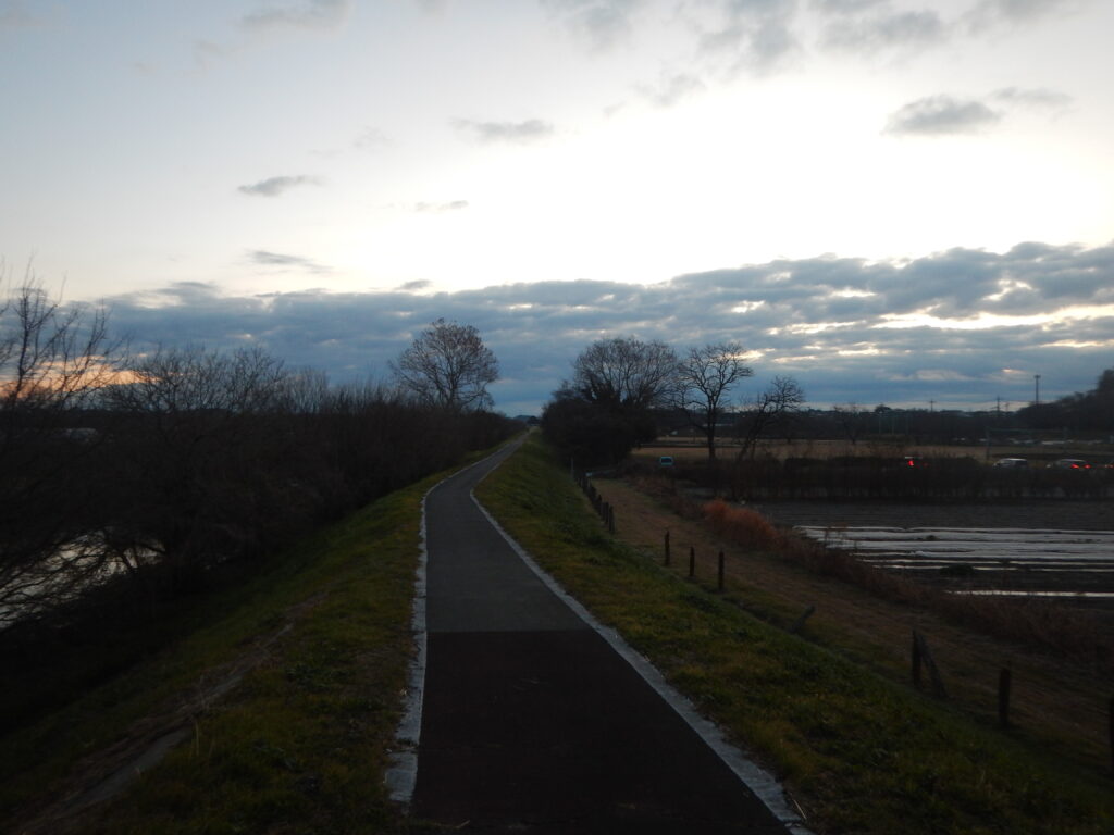 旭日が良く望める見沼田んぼぼ橋に行くと、やはり雲は重く立ち込めて初日は無理でした。右のグランドの駐車場には既に多くの車がパーキングしていましたが