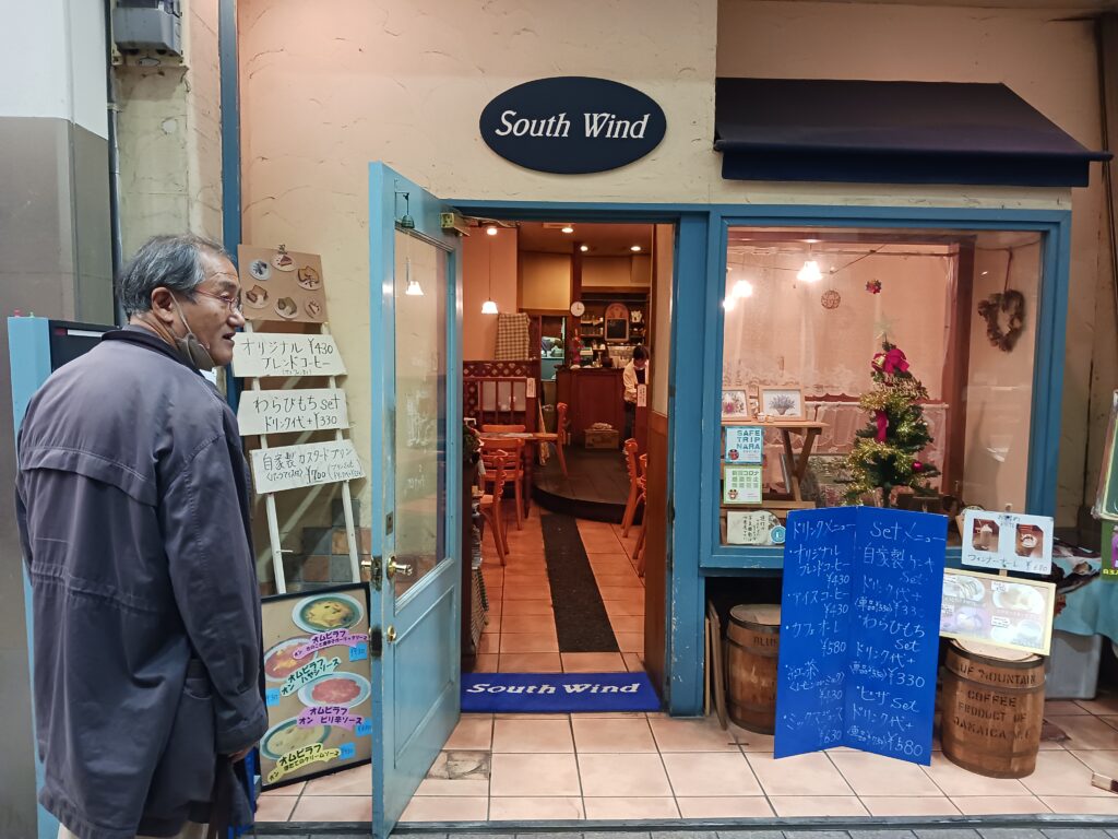 いつものように奈良の東向き商店街のレトロな雰囲気のカフェでくつろいでから、京都に向かいます。あいにくこの日は近鉄線が事故のため、JRの奈良駅まで歩き、そこから京都に向かいました。奈良は近鉄が動かないと不便です。