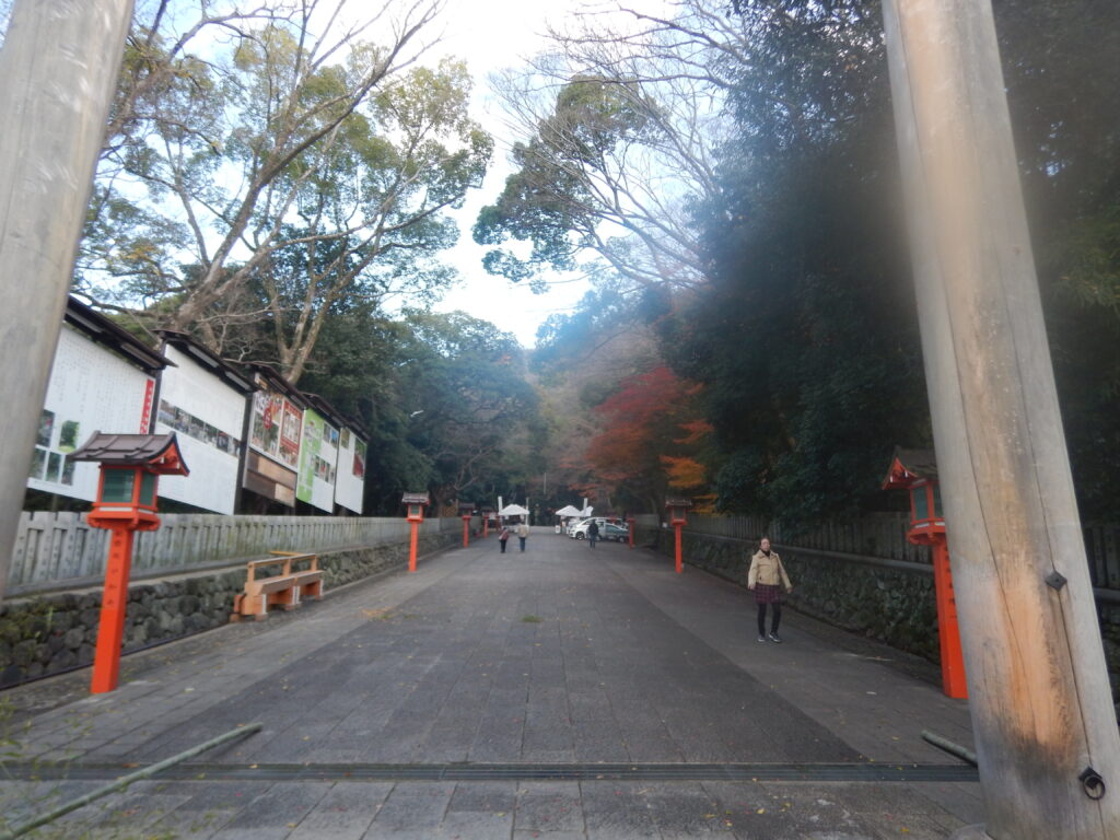階段を登ったら道路を渡ると眼前に奥行きのある参道が続いていました。駅前のセコセコした神社のイメージがここで深遠な神社に一辺に変わりました。