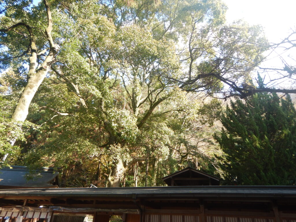 ご神木のクスノキです。弥生時代や古墳時代常緑広葉樹は東日本高地を除いて日本列島の象徴だったのでしょう。船はクスノキの巨木とタブノキの巨木から作りました。