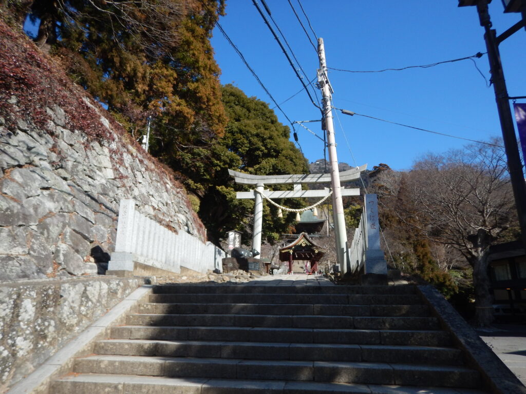 この階段も中々です。昔は麓からここまで歩いて登りました。