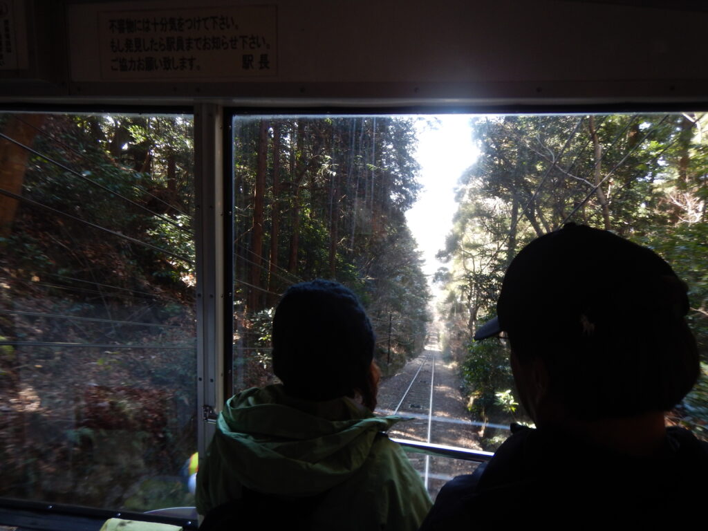 ケーブルカーで鞍部へ