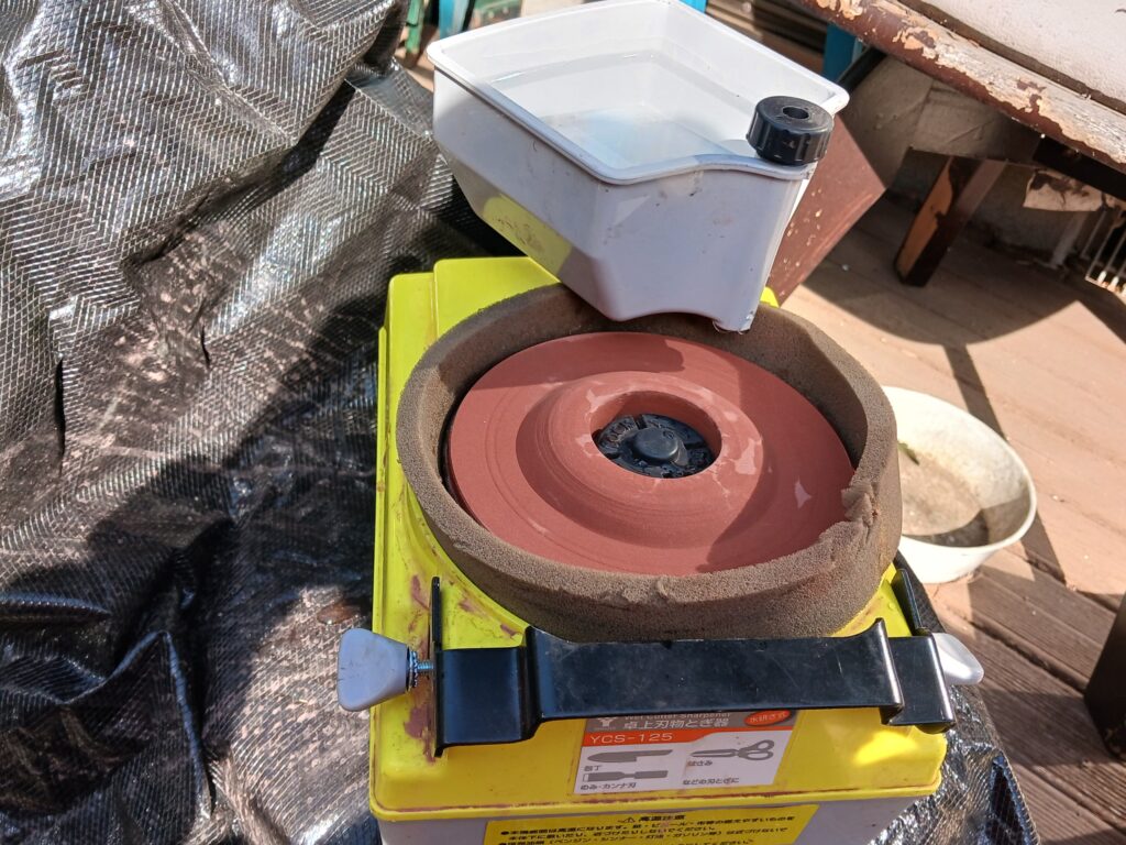 もう薔薇の冬作業は終わり、冬に傷んだ花を花壇に移し取り合えず春の花を植えたので、前からやろうと想っていた園芸挟みなどの研ぎを始めました。