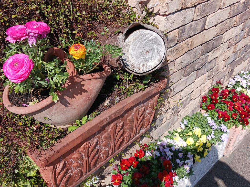 ラナンキュラスは半月遅く購入すれば生きが良かったのですが、寒さで葉がちじこまりようやく出てきました。特に今年のビオラは真冬でも痛まず旺盛でした。画像の切株はユーカリです。大きくなりすぎて寿命が尽きたので思い切って切りました。