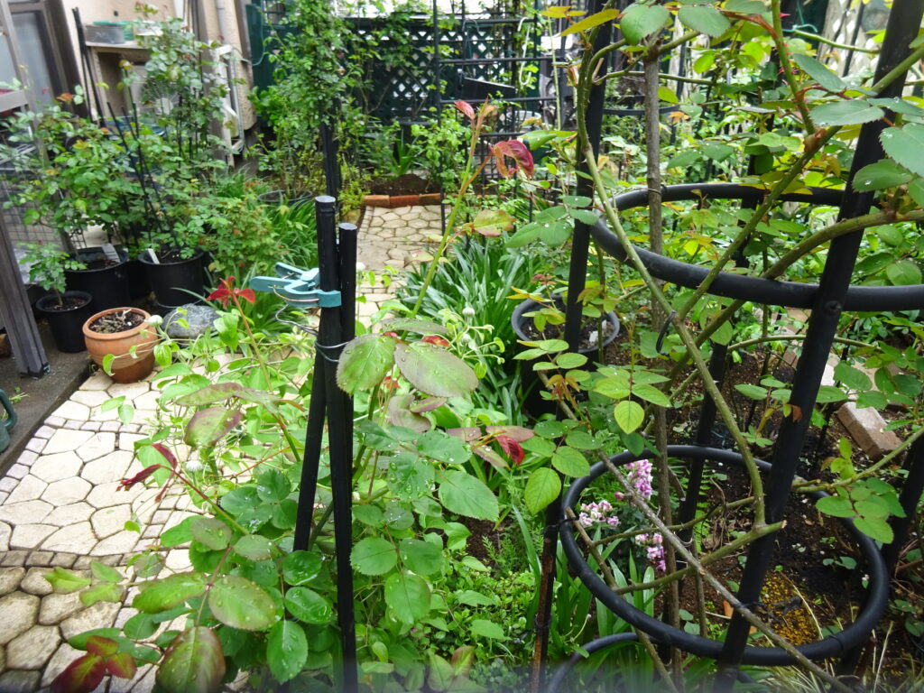 日に日に薔薇の緑が増えてきました。この時期成長不良な薔薇が目立ちますが、小さな薔薇1本を除いて見な健在でこのままつつがなくシーズンに突入するでしょう。