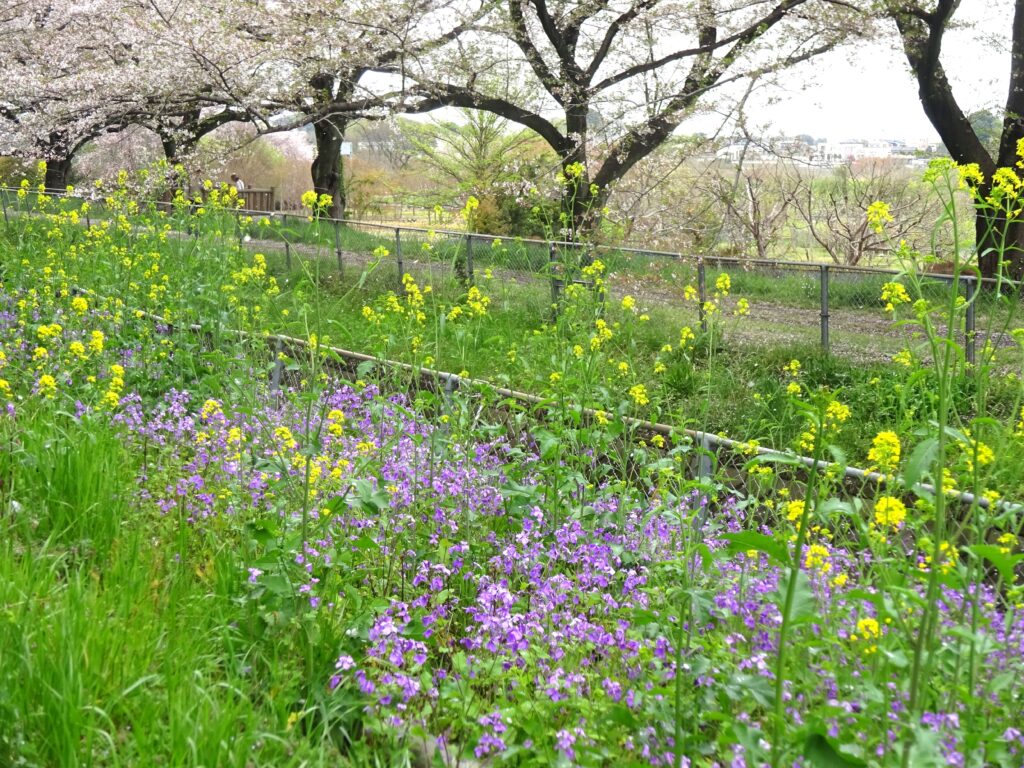 土手も菜の花、ダイコンソウでカラフルですが、やはり自然の植物の優しいカラーは美しいです。
