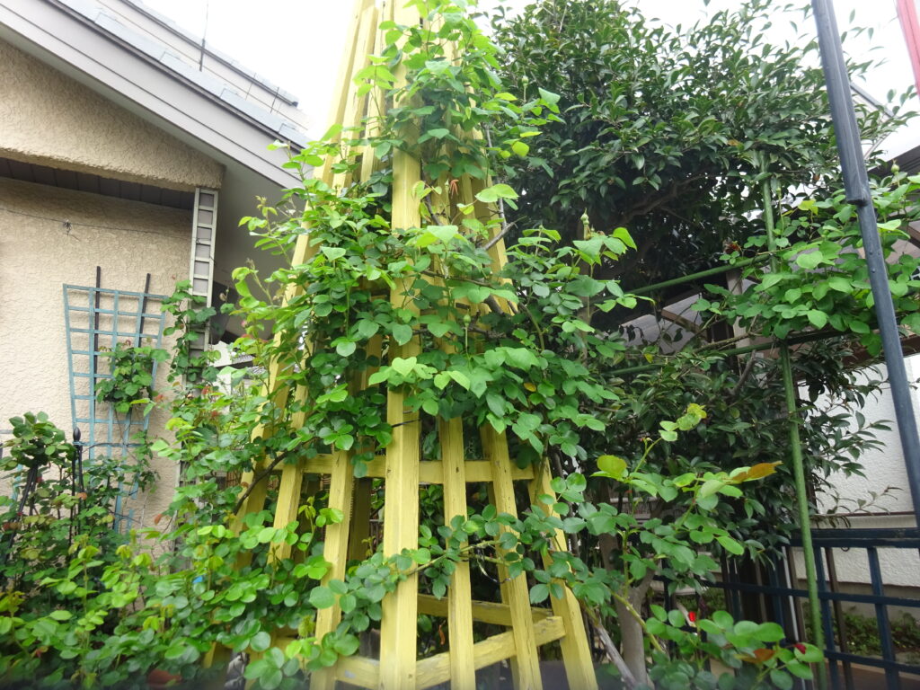 クレマチス苗からアンドン仕立てにしました。アンドンが短くなったので上にアンドンを足しました。