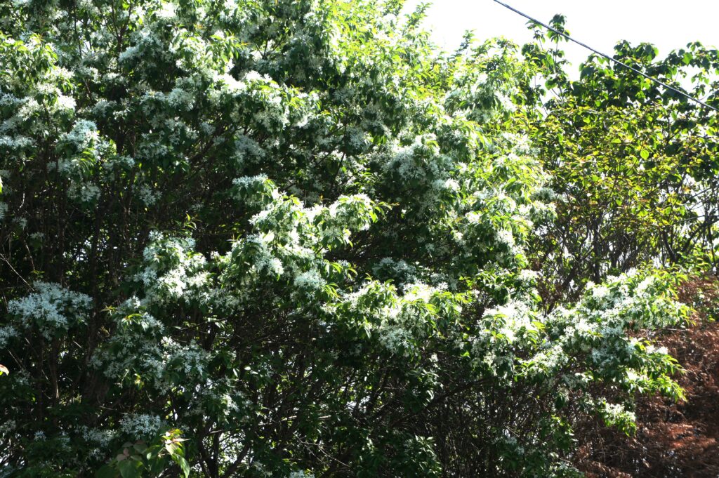 この白い花を咲かせている樹は驚くなかれ「なんじゃもんじゃの木」でした。
